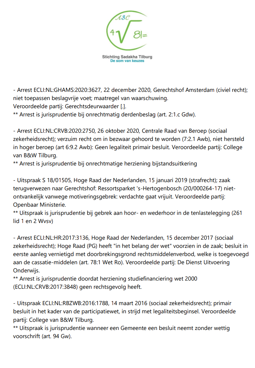 Bekijk vijf einduitspraken in de periode 2016-2021 waarbij de burger in het gelijk werd gesteld.