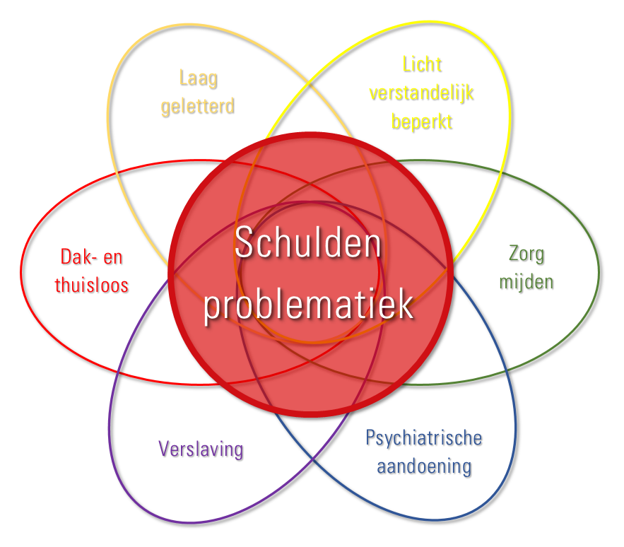 Ik heb deze afbeelding gemaakt voor een artikel in Sociaal Bestek. Qua verhouding (aantallen) tussen de groepen niet representatief, maar het beeld lijkt me helder.